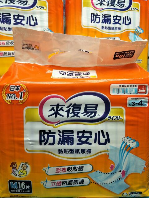 來復易防漏安心黏貼型紙尿褲l13 M16片226元 蝦皮購物